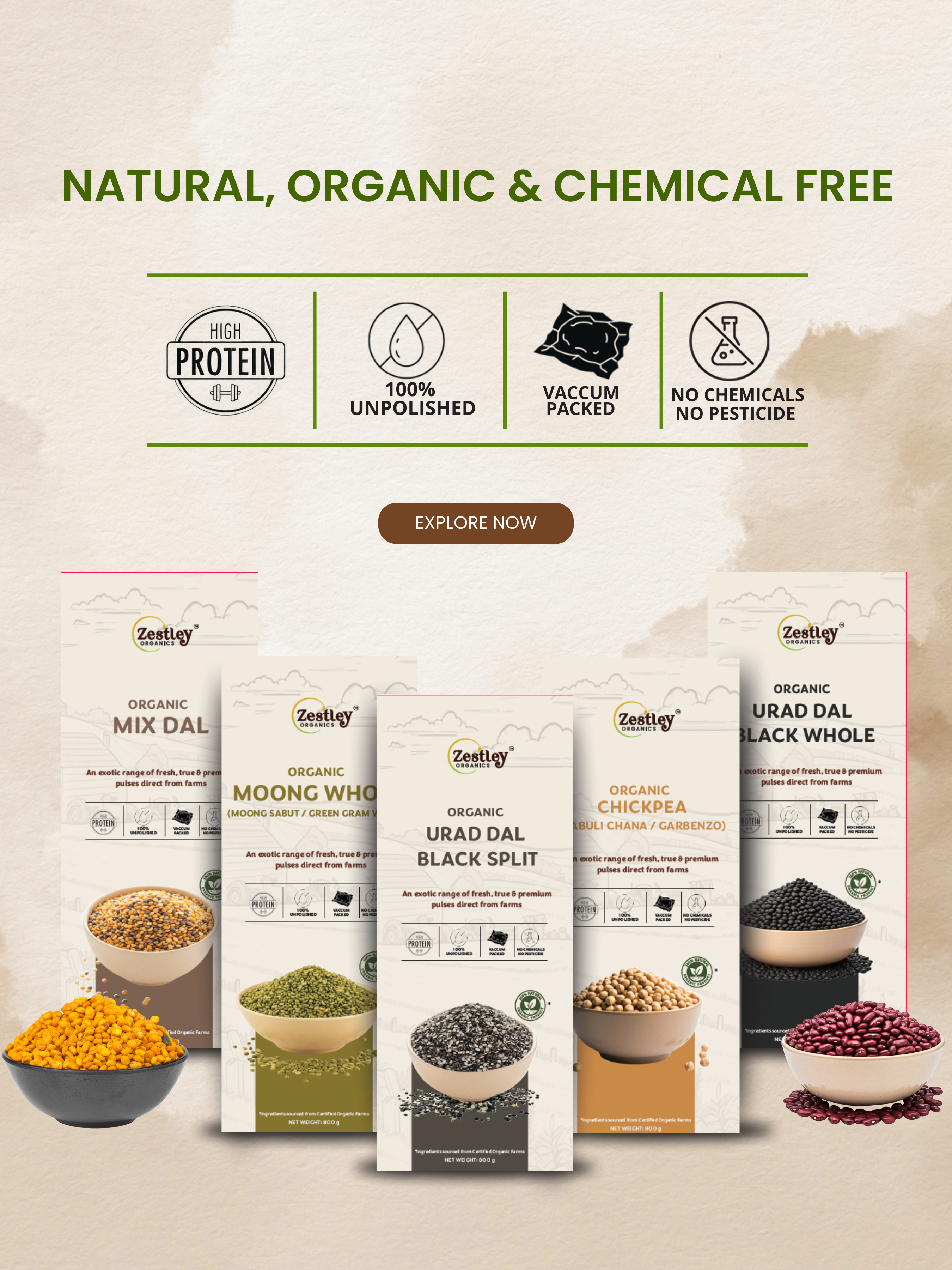 At Zestley Organics, we bring you the pure goodness of nature, sourcing from trusted farms and preserving every bit of nutrition and flavor. With every pack, we deliver not just organic food but a promise of health, trust, and a sustainable future.